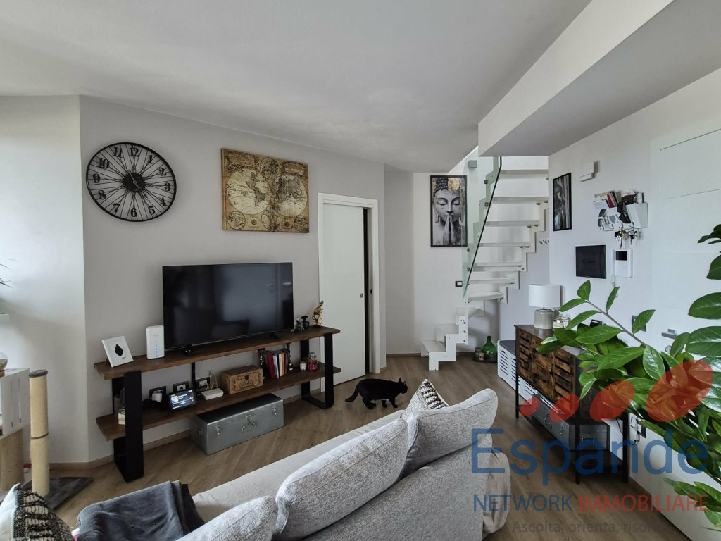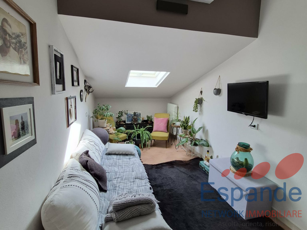 La soluzione si sviluppa su due livelli ed è composta da ingresso su luminoso soggiorno con angolo cottura ed accesso al terrazzo perfetto per mangiate all'aperto con amici e parenti, una camera matrimoniale, bagno con doccia in muratura di design e comoda mansarda con bagno dove è possibile realizzare una seconda camera da letto o un'area relax/studio.