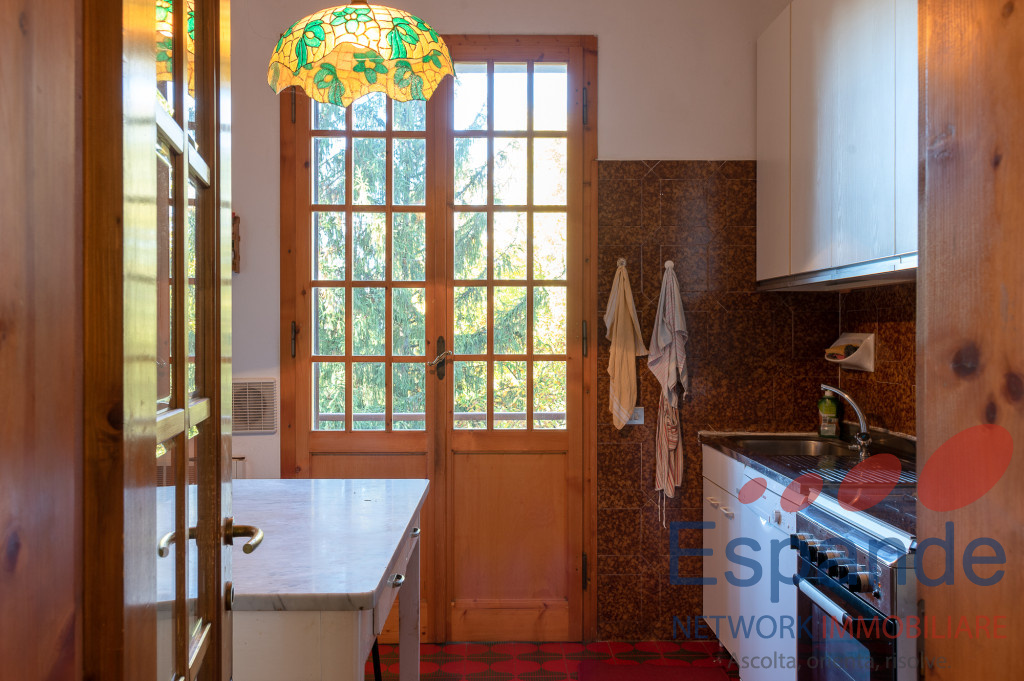 GRIZZANA MORANDI - nella frazione di Stanco di Sotto, in posizione panoramica con vista Corno alle Scale e Monte Cimone, vendesi villa singola tenuta in buone condizioni, disposta su due livelli; al piano terra, ingresso principale su corridoio dove predomina la scala che accede al piano primo a semi elica con doppio volume, tavernetta, cucinotto, bagno, centrale termica, garage ed ampio portico di mq. 62 circa; piano primo, ampio salone con uscita sul parco posteriore ed affaccio sulla terrazza panoramica, dotato di camino, cucina abitabile, disimpegno zona notte con tre camere da letto matrimoniali, bagno padronale e lavanderia. Le finiture generali risalgono al periodo di costruzione dello stabile, quindi anni '70, gli infissi sono in legno e di buona qualità con vetro singolo, pavimenti e rivestimenti in ceramica del periodo, impianto di riscaldamento con termosifoni in ghisa alimentati da caldaia a gasolio, la zona è anche servita dal metano di città. La villa è contornata da parco esclusivo e ben curato di 5.352 mq, in cui vi è una bella zona spaziosa e pianeggiante, oltre che ad una zona leggermente scoscesa e comunque agibile in cui vi è il bosco di castagne. La posizione è panoramica e felice, a soli 2 km dal paese di Grizzana Morandi ed a soli circa 10 km dal casello autostradale di Rioveggio.